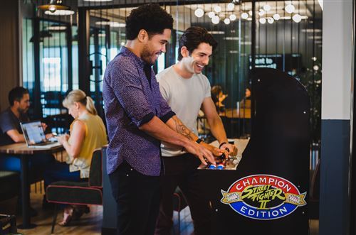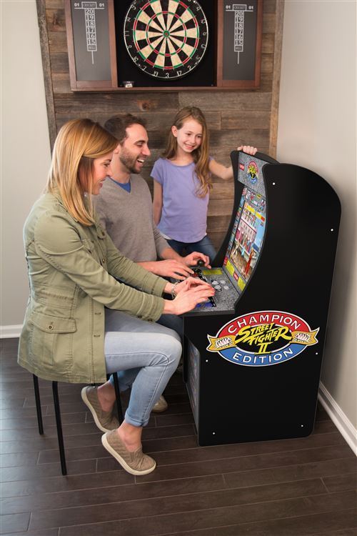 Retrouvez l’univers emblématique des jeux d’arcades chez vous. La borne d’arcade Street Fighter II peut être placé dans n’importe quelle pièce de votre foyer y compris dans les plus petits espaces. Son design retro et les graphiques en haute résolution de son écran couleur LCD de 43cm, vous replongent dans l’authenticité du jeu de combat le plus connu. Grâce à ses 2 joysticks d’origine, vous pouvez jouer seul ou avec des amis. Vous n’avez pas besoin de jetons, vous pouvez jouer en continu sur votre jeu préféré ! Les 3 jeux Street Fighter II Champion Edition, The New Challengers et Turbo sont inclus dans votre borne d’arcade.Si vous êtes plus à l’aise pour jouer debout, vous pouvez surélever l’arcade, à l’aide de son rehausseur, vendu séparément.Facile à monter, il suffit d’assembler les parties.