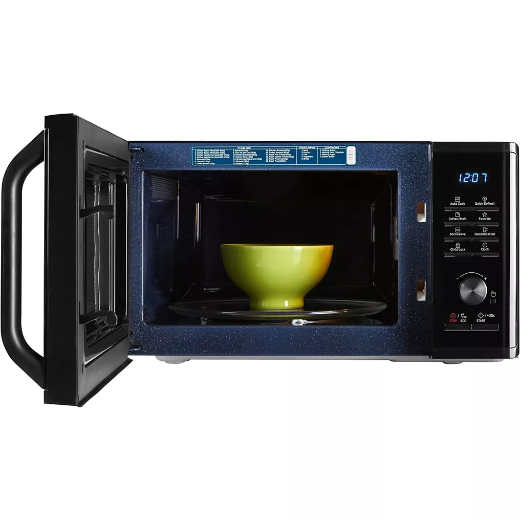 - Nettoyage : manuel, peut être simplifié avec un bol d’eau et un jus de citron chauffé au micro ondes pour ramollir les résidus